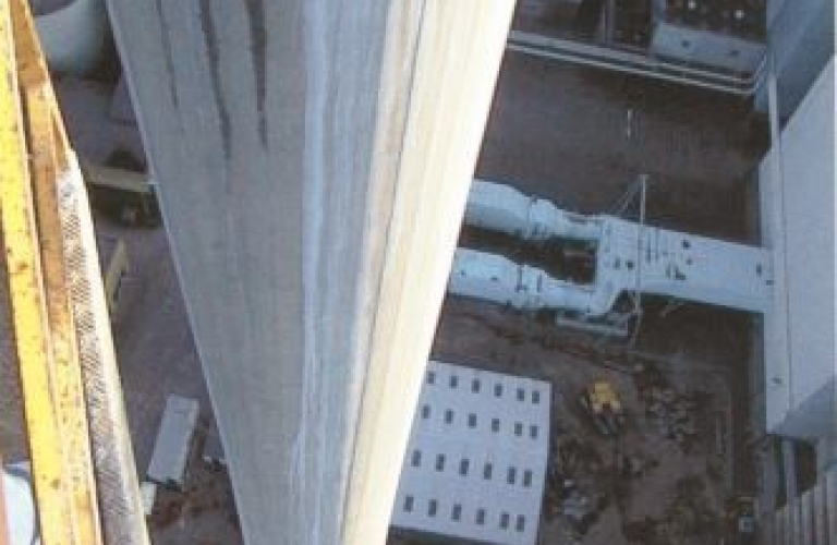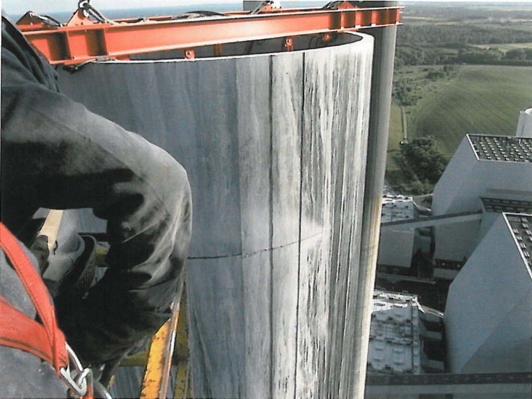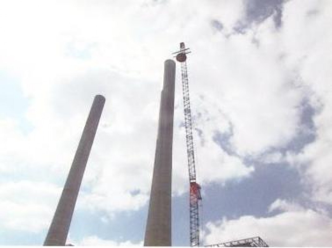 Indledende arbejder før nedskæring af skorsten på Studstrupværket, ca. 2004