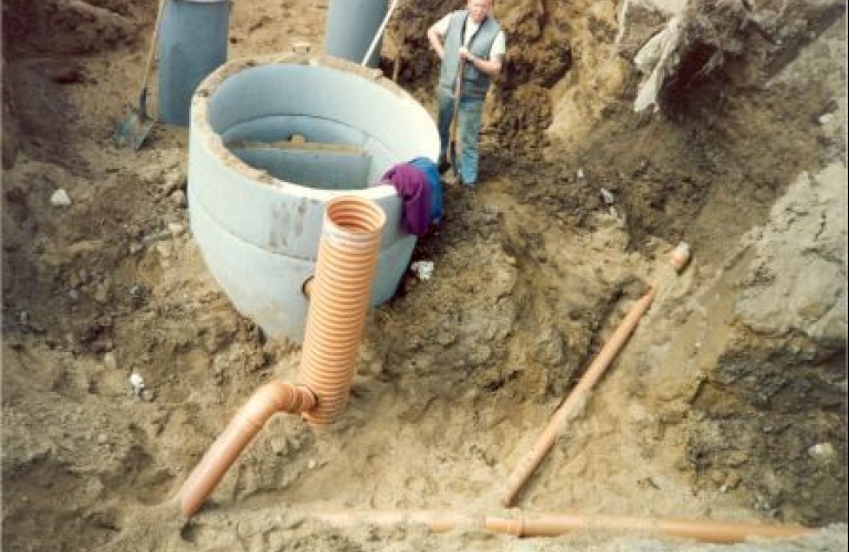 Udgravning til påslaget ved Shell Farm i Tjele i 1989, maskinføreren er Mogens Christensen, som i mange år var en meget respekteret gedfører, hos entreprenør Karsten Lund i Mollerup.